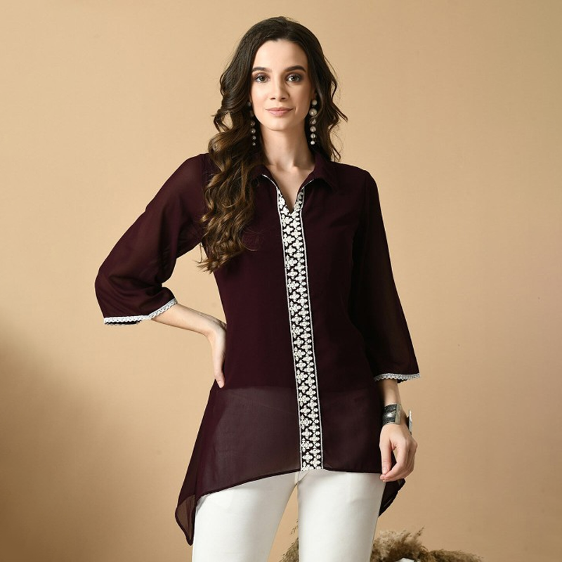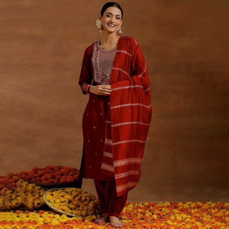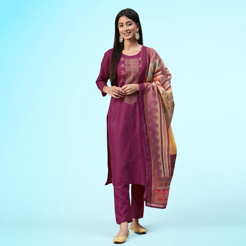 This charming Purple color saree comes with a running blouse piece. The drape is 6.5 meters long. The readymade blouse as donned by the model in the picture can be purchased separately from Suta. Disclaimer: The colour of the product might slightly vary as the sample pictures have been taken in broad daylight/under studio lights. Size & Fit : length 6.5 meters, width 1.2 meters, with blouse piece. Material & Care : Saree fabric: Pure Linen Dry cleanPrint or Pattern Type