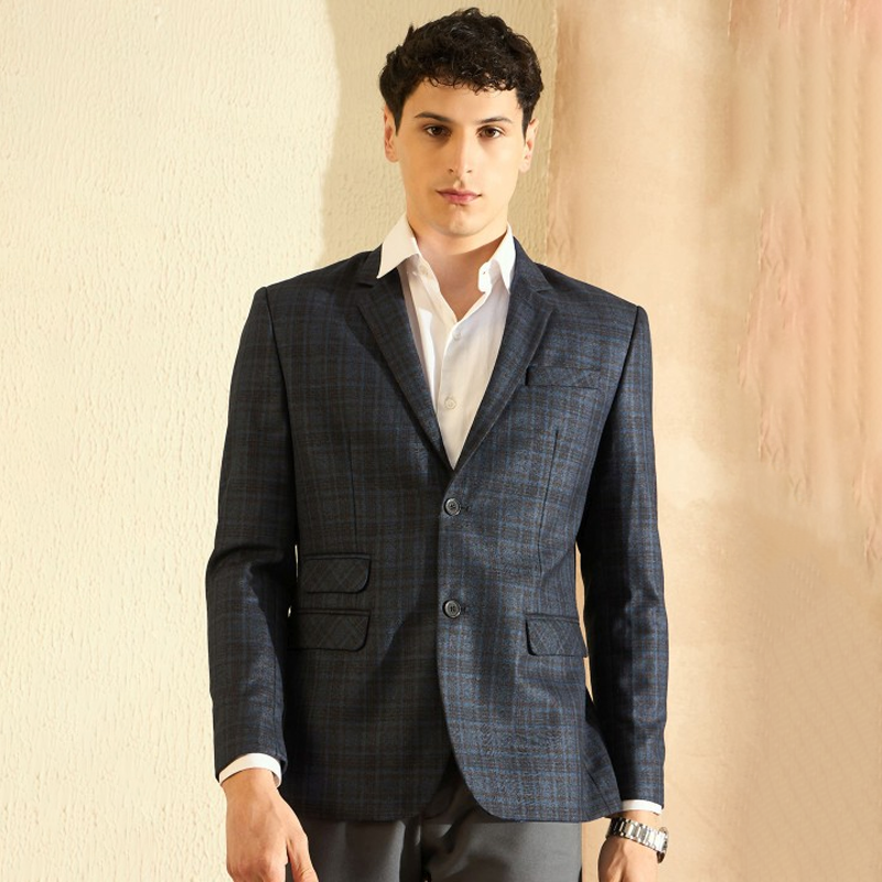 Men Checked Single-Breasted Notched Lapel Blazer