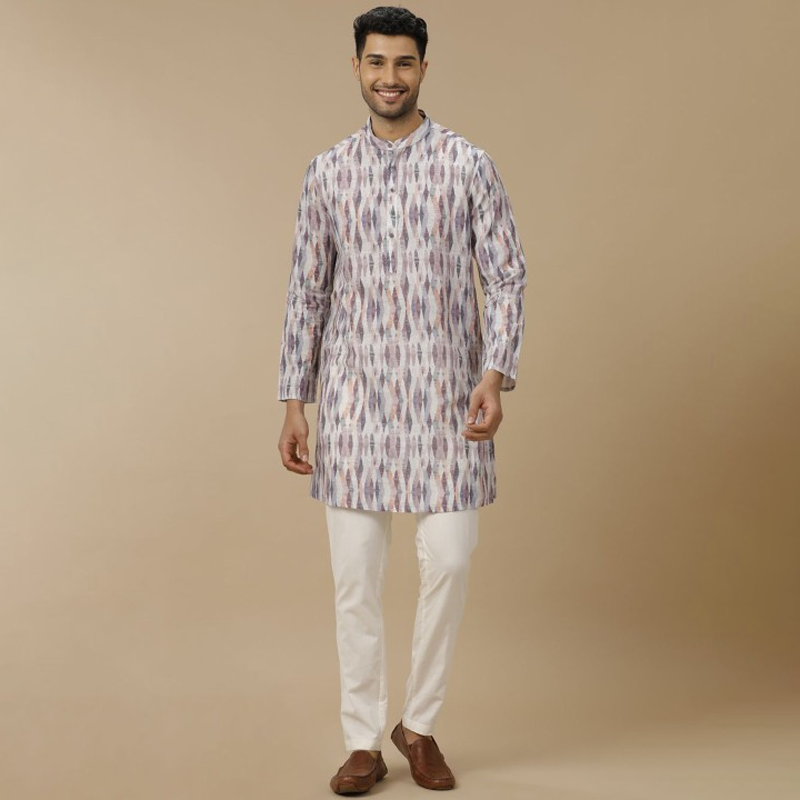 Abstract Printed Mandarin Collar Linen Cotton Straight Kurta