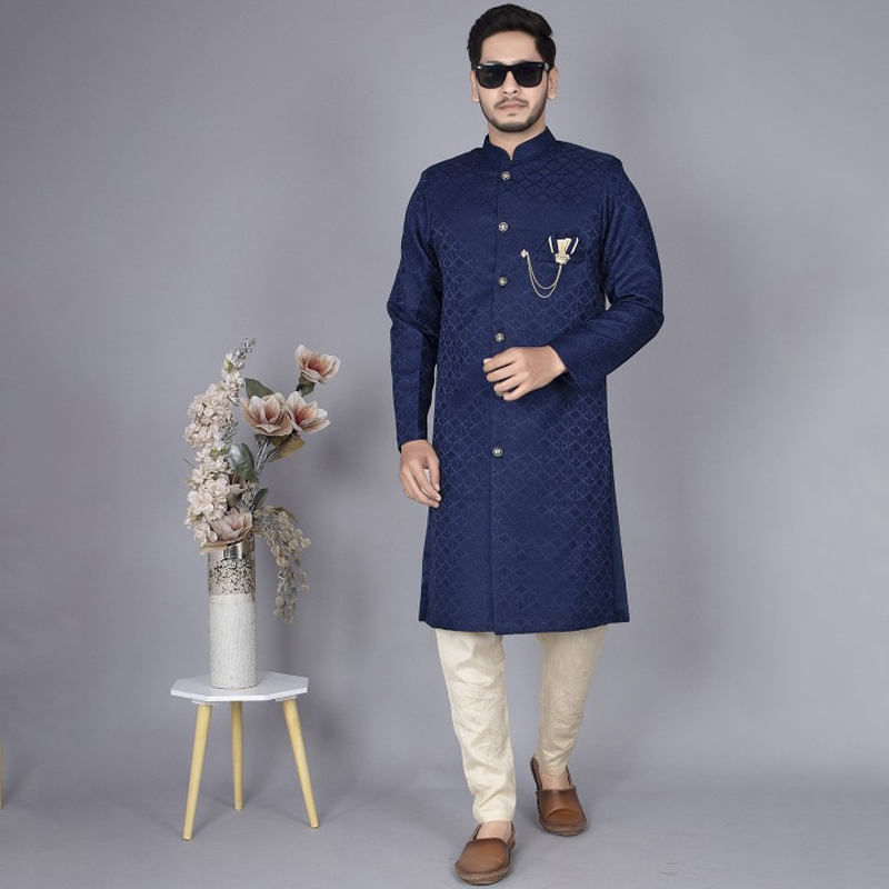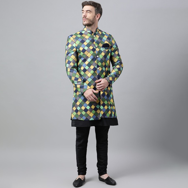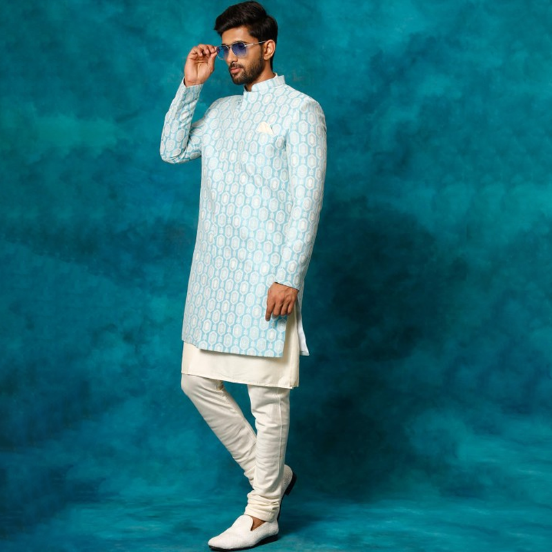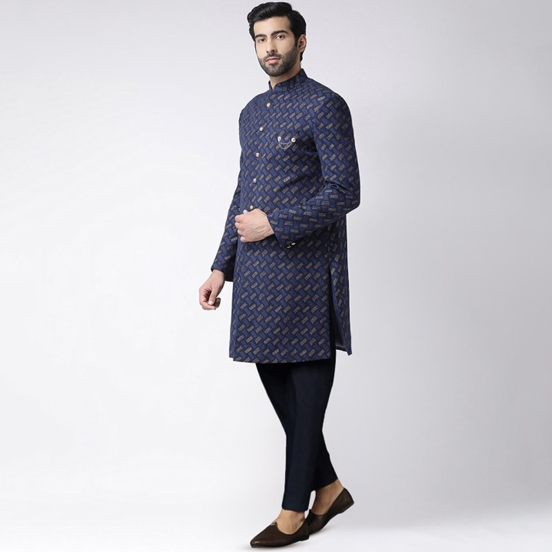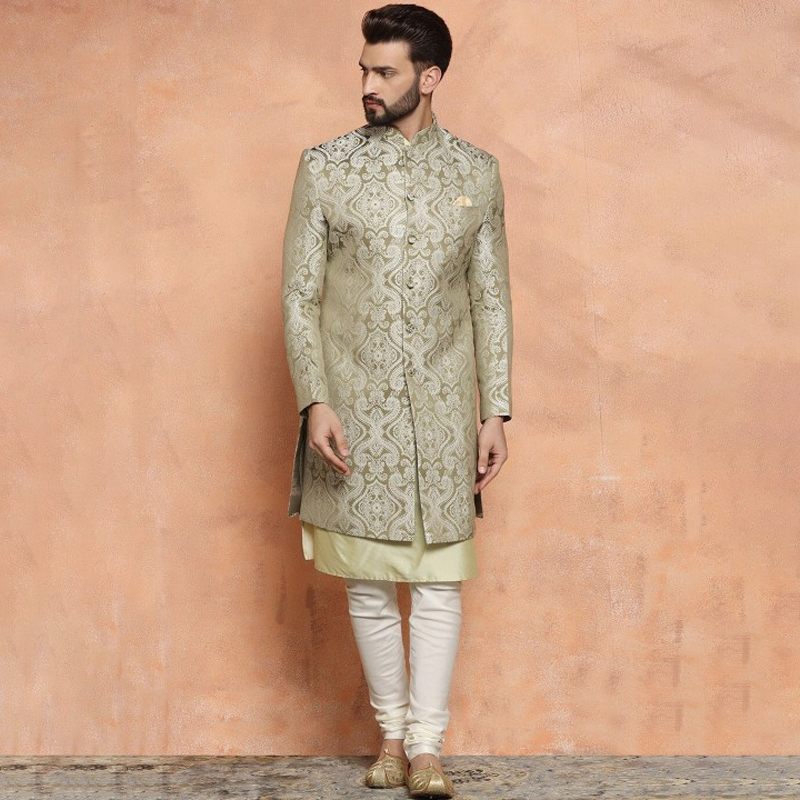Men Ethnic Motifs Woven Design Mandarin Collar Indowestern Sherwani Set