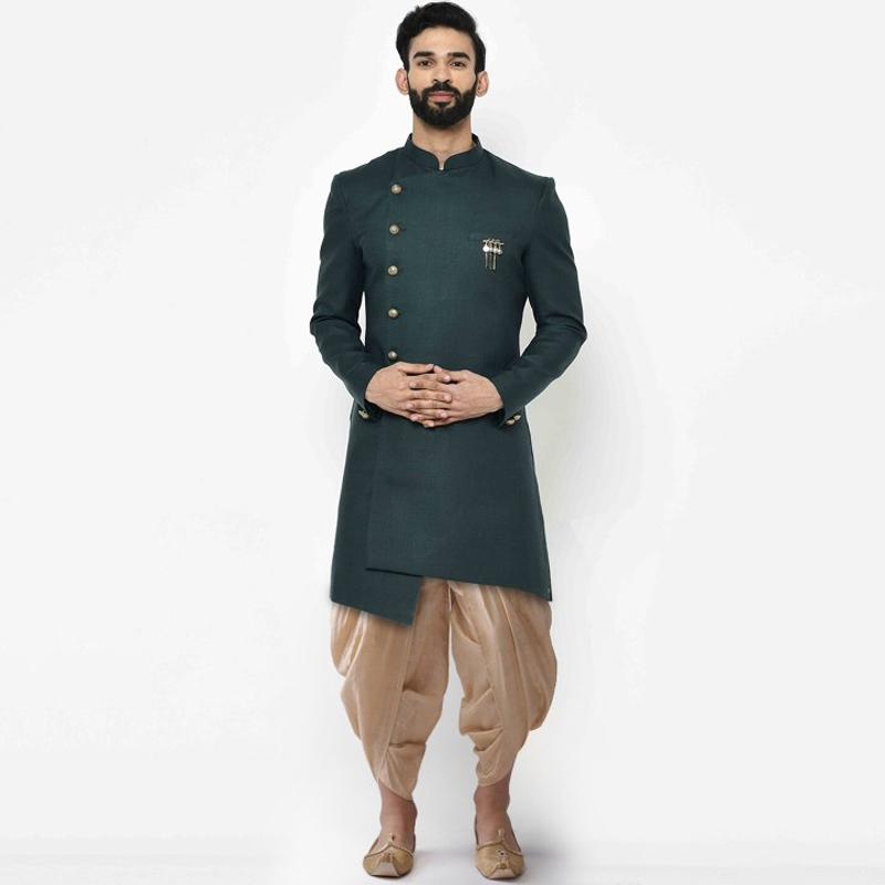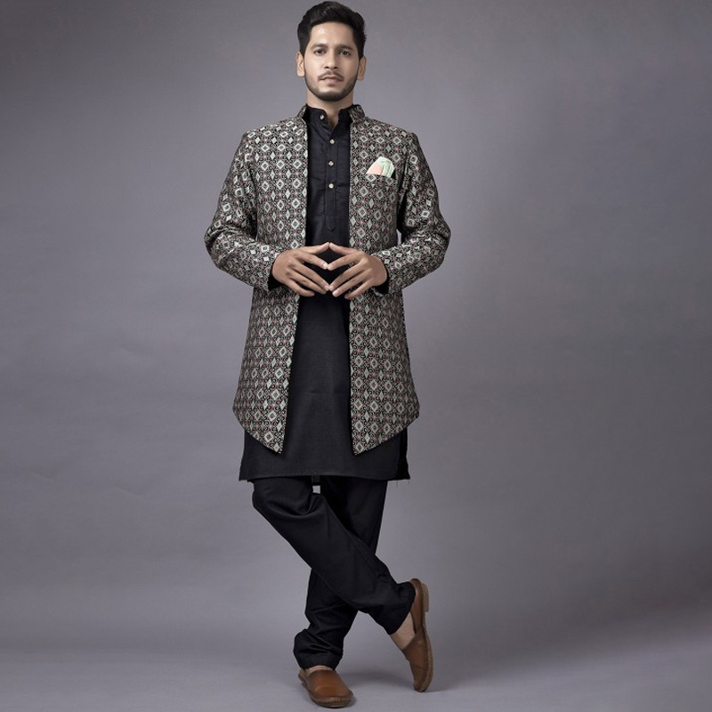 Men Black & White Solid Sherwani Set