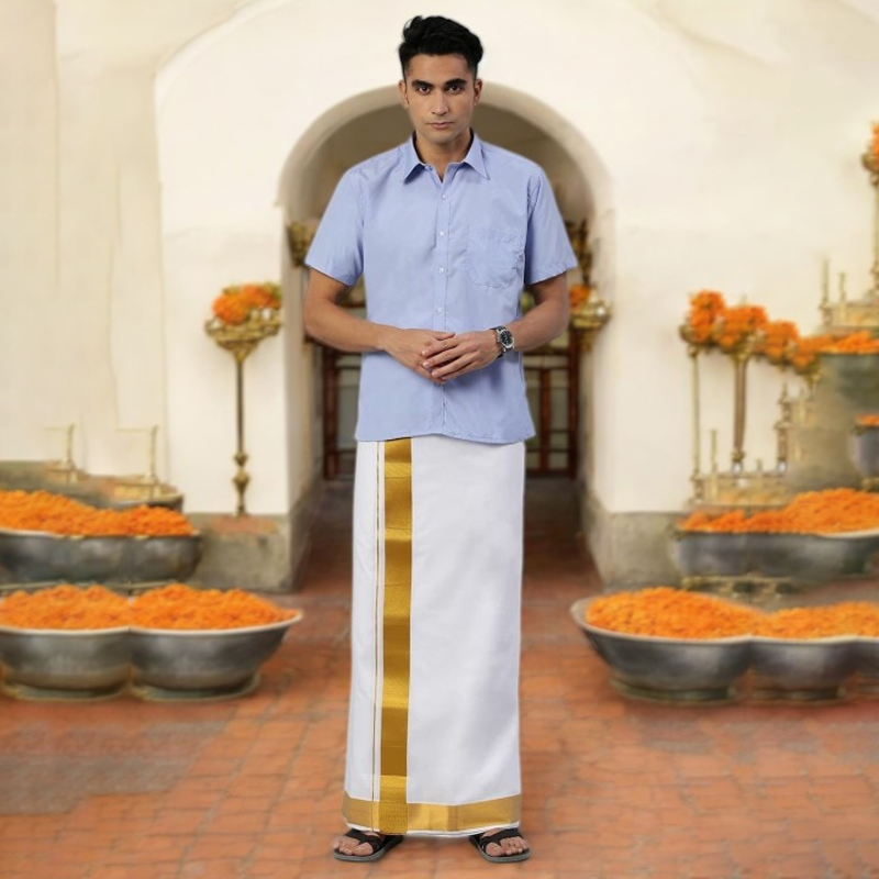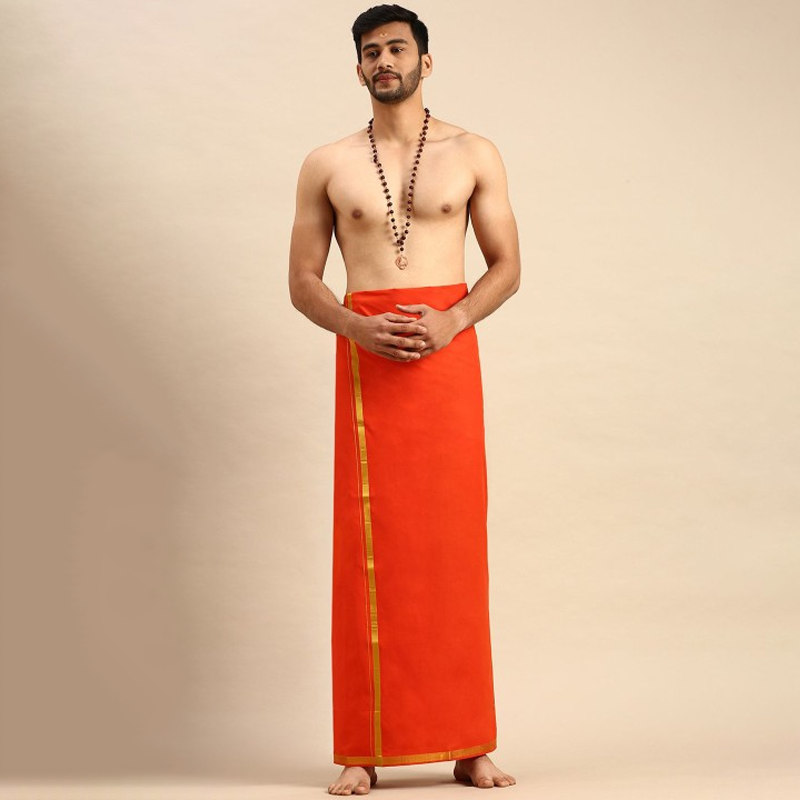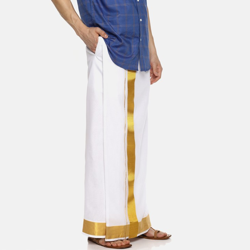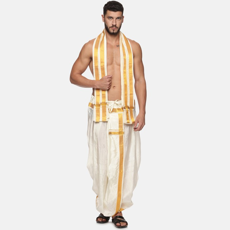 Men Zari Border Art Silk Dhoti