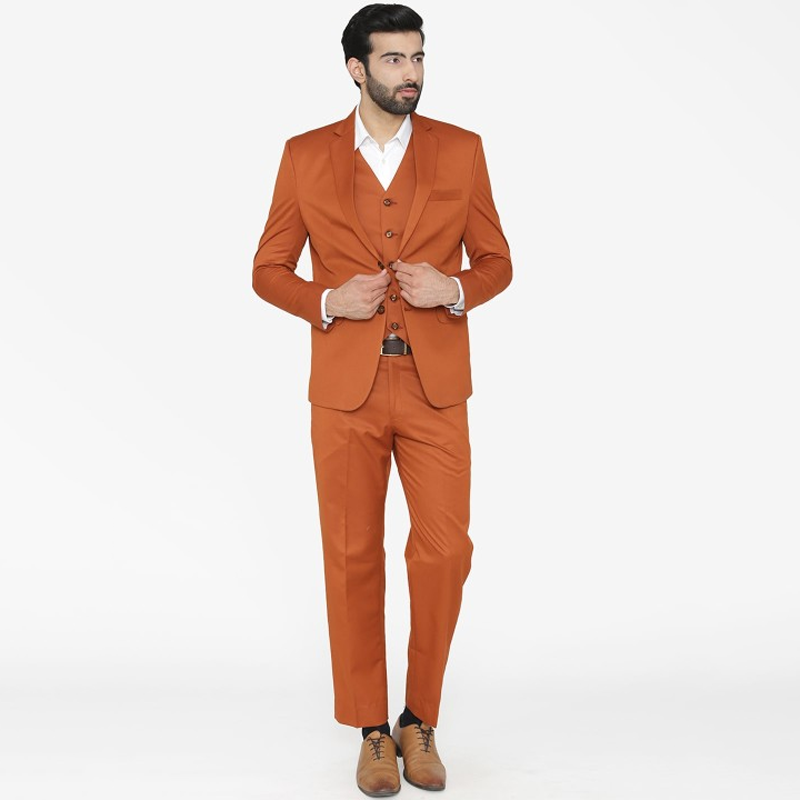 Men Notched Lapel Long Sleeves Single-Breasted Three-Piece Party Suit