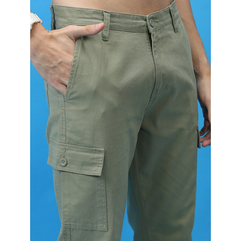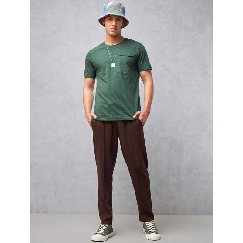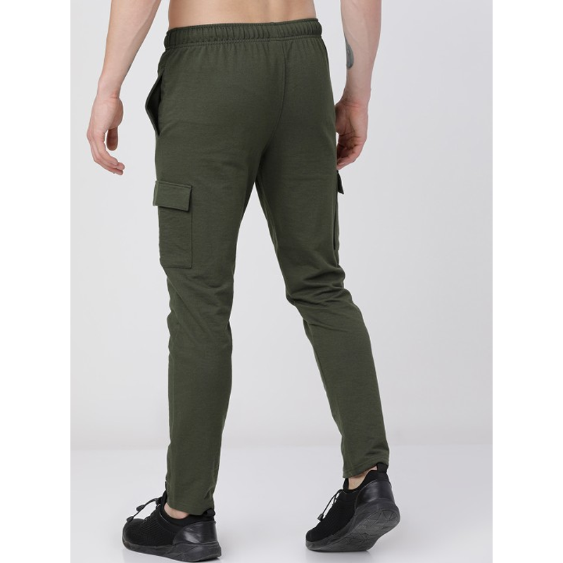 Men Olive Green Solid Slim-Fit Track Pants
