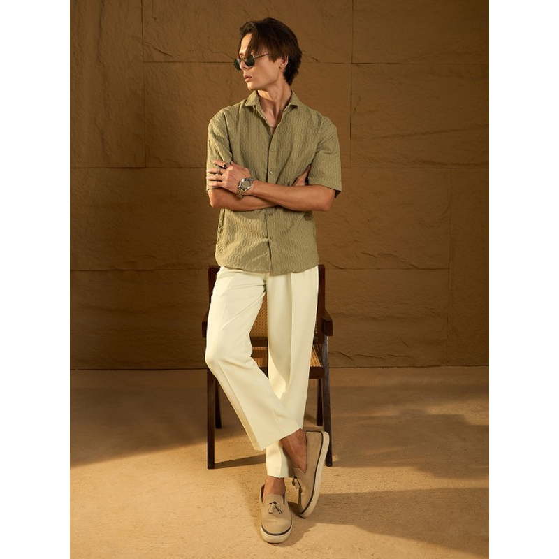 Solid Cotton Slim Fit Mens Casual Wear Shirt