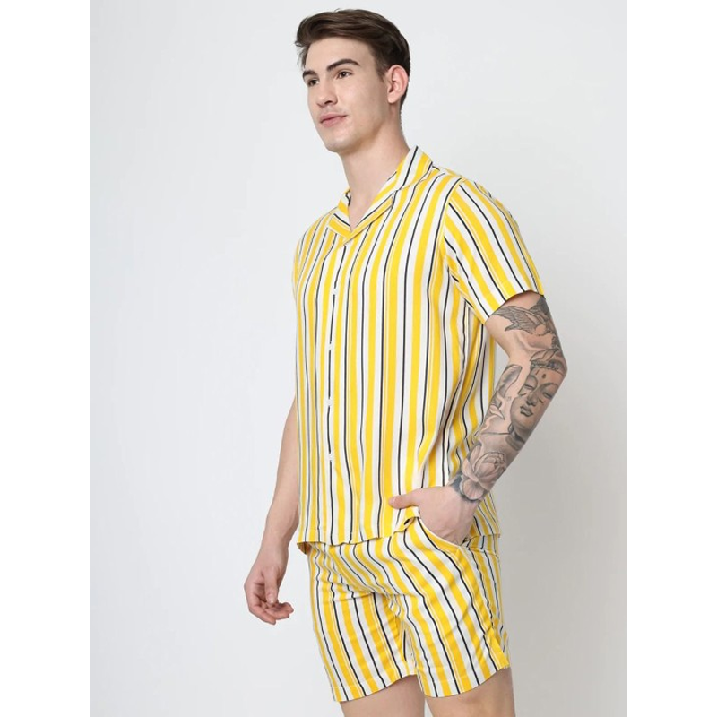 Men Green & Gold-Toned Striped Mandarin-Collar Kurta