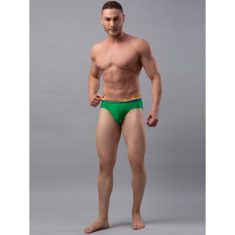 Underjeans Men Green Cotton Blend Brief